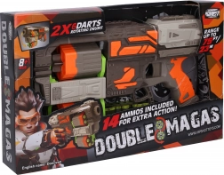 Bucurați-vă de un joc dinamic de acțiune cu pușca din spumă pentru copii, care îmbină distracția în siguranță cu funcții practice. În pachet găsiți 14 săgeți din spumă și 2 încărcătoare a câte 6 săgeți, astfel încât aveți mereu muniție la îndemână. Încărcarea se face simplu prin armarea părții din spate a armei, iar maneta de sub cocoș permite comutarea fulgerătoare între încărcătoare.