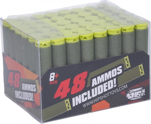Pachet cu 48 buc de proiectile din spumă de rezervă cu dimensiunea 7 × 1,3 cm pentru reîncărcare rapidă. Spumă ușoară, blândă cu mediul și confortabilă la utilizare. Destinate pentru modele selectate ale aceluiași producător.