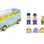 Autobuz turistic robust, cu interior deschis și patru locuri, ideal pentru mâini mici și care încurajează jocul independent.