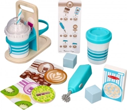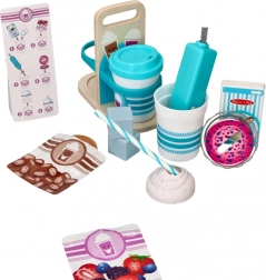 Setul pentru copii pentru băuturi calde și reci este ideal pentru micii barista de la 3 ani în sus. Copiii se pot juca de-a prepararea cafelei, a ciocolatei calde și a milkshake-urilor răcoritoare – de la alegerea ingredientelor până la amestecare și servire.