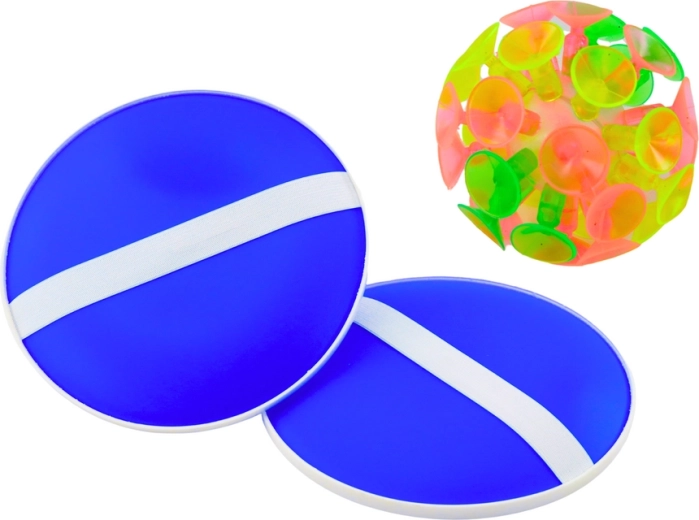 Descoperiți bucuria și activitatea în timpul zilelor de vară cu acest joc de îndemânare unic, ideal pentru distracția în aer liber. Setul include o minge cu ventuze și două palete rotunde albastre cu o parte specială pentru prindere ușoară, oferind un joc dinamic între jucători.