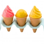 Setul pentru prepararea înghețatei din nisip este o jucărie fantastică ce îi introduce pe copii în lumea creativă a realizării înghețatei. Setul include trei napolitane pentru înghețată, patru umpluturi colorate pentru înghețată, două cornete drăgălașe, o linguriță pentru servirea înghețatei și un suport special pentru napolitane. Cu acest set bogat, copiii pot crea diverse deserturi din nisip și se pot distra pregătind înghețată delicioasă.