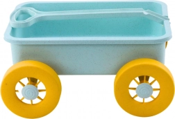 Un cărucior pentru copii ușor și rezistent, în culoare turcoaz pastel, ideal pentru nisip, grădină și plajă. Datorită mânerului confortabil se trage ușor, dezvoltă motricitatea grosieră și oferă ore de distracție creativă. Fabricat din plastic de calitate, rezistent la intemperii, cu certificare CE și conform EN71.