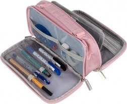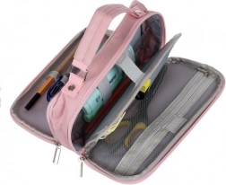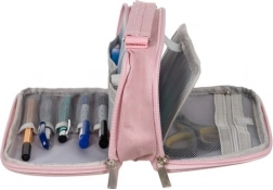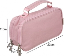Penar școlar practic cu două compartimente și mâner, în culoare roz, care oferă o organizare atent gândită a accesoriilor și rezistență pentru utilizarea zilnică. Datorită celor două secțiuni cu fermoare duble, conținutul este mereu depozitat în siguranță și în același timp ușor accesibil. Poliester durabil, mai multe buzunare din plasă, prinderi elastice pentru instrumente de scris și buclă robustă, prinsă cu nit îl fac alegerea ideală pentru elevi, studenți și birou.