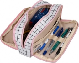 Utilizarea versatilă este apreciată de elevi, studenți și profesioniști. Penarul este potrivit pentru școală, birou, organizare acasă și călătorii – poți depozita cosmetice, cabluri, încărcătoare și alte mărunțișuri. Aspectul elegant în carouri cu bordură roz îți evidențiază stilul.