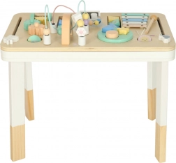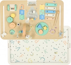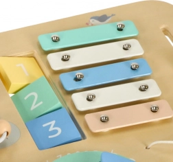 Xilofonul, sortatorul de forme, rotițele dințate cu glisoare și labirintul cu mărgele îi țin pe copii ocupați mult timp și le dezvoltă în mod natural motricitatea fină și logica.