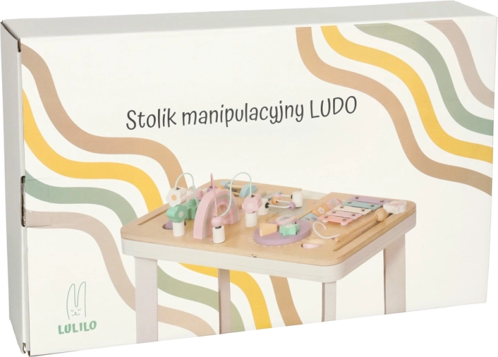 Măsuța educațională din lemn LULILO LUDO este un mic „centru educațional” de acasă, care oferă stimuli senzoriali variati și încurajează jocul independent. Elemente pastelate, muchii netede și o construcție stabilă creează un mediu sigur pentru explorare curioasă.