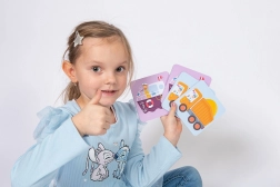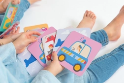 Pachetul conține idei inspirate pentru activități: primele căutări de perechi, jocuri narative, imitarea sunetelor mijloacelor de transport, desen după carduri și exerciții de atenție. Jocul sprijină dezvoltarea motricității fine, cunoașterii lumii și a abilităților de comunicare.