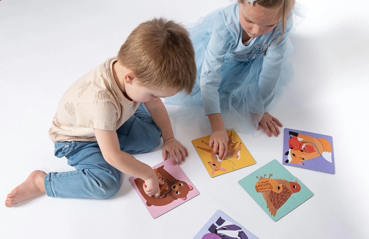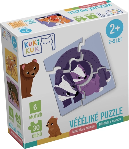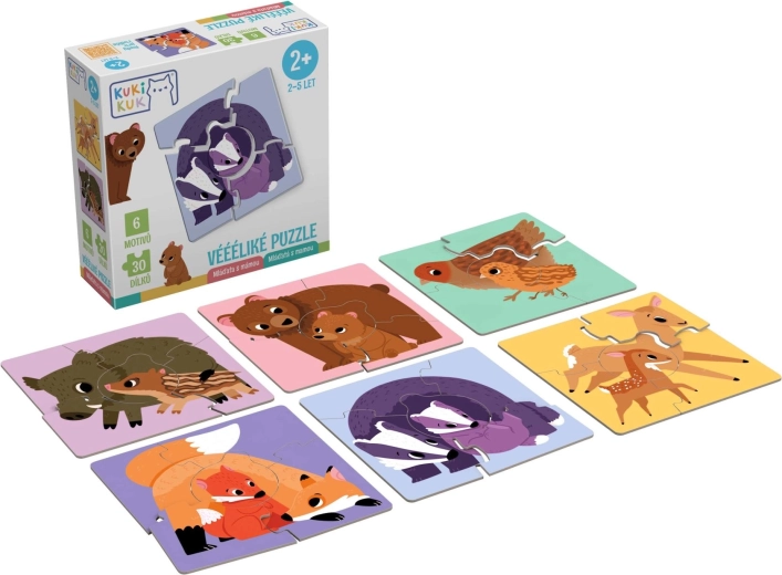 Sunt incluse sfaturi și variante de joc pentru diferite niveluri de vârstă: de la potrivirea simplă a puilor cu părinții, la asamblare după culorile fundalului și până la ghicitori distractive fără indicii pe fața principală. Jocul dezvoltă vocabularul, coordonarea mână–ochi și imaginația și stimulează discuțiile despre natură și viața animalelor. Fabricat în Cehia.