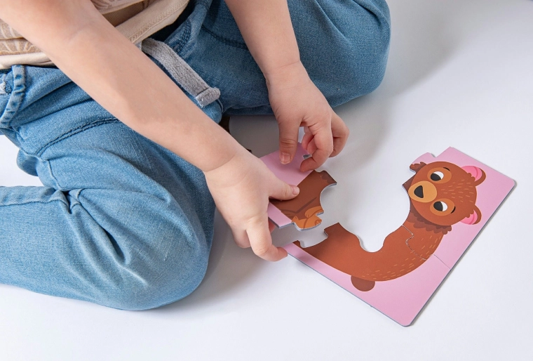 Cartonul rigid rezistă la joaca zilnică. Mărimea pieselor este adaptată mâinilor copiilor și ușurează manipularea și depozitarea.