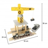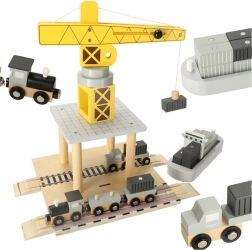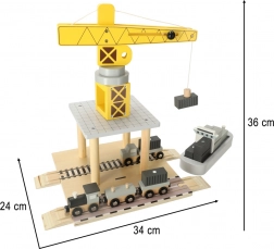 Copiii vor adora această macara de lemn pentru debarcader, care le oferă oportunitatea de a juca rolul manipulării containerelor de pe nave pe mașini și trenuri. Acest set oferă multe componente care permit scenarii variate de joc, dezvoltând imaginația și abilitățile manuale ale copilului dumneavoastră.