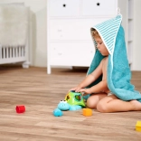 Jucăria plutește stabil la suprafață, astfel încât copiii pot exersa introducerea formelor direct în cadă fără să se scufunde.