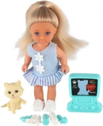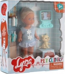 Păpușa veterinară are un corp solid și măsoară aproximativ 11 cm. Copiii pot încerca rolul de veterinar cu setul care include toate accesoriile necesare pentru îngrijirea veterinară – toate necesare pentru examinarea și vindecarea pacienților lor de pluș.