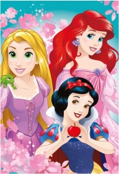 Albă-ca-Zăpada, Ariel și Rapunzel într-o singură imagine colorată îi motivează pe copii să asambleze și le stimulează fantezia.
