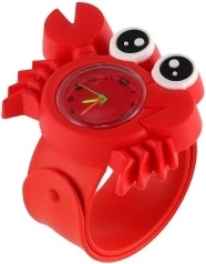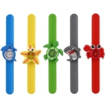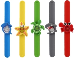 Ceasuri amuzante pentru copii, cu motive de animale marine, care fac învățarea orei ușoară și purtarea confortabilă. Datorită curelei din silicon cu auto-închidere (slap), ceasul se pune simplu dintr-o singură „lovitură”. Acționarea diferențiată color ajută copiii să citească mai ușor ora, iar bateria LR626 integrată permite utilizarea imediată. Disponibile în 5 motive vesele – delfin, stea de mare, țestoasă, rechin și crab.