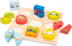 Descoperiți diverse mijloace de transport cu acest puzzle colorat cu inserții. Puzzle-ul conține barcă, avion, ambulanță, autobuz școlar, mașină de pompieri, excavator, taxi, tractor și mașină de poliție. Este un joc perfect care nu doar stimulează recunoașterea formelor și culorilor, dar și antrenează memoria și dezvoltă motricitatea fină a copiilor.