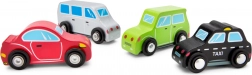 Acest set include patru mașinuțe din lemn, care au un aspect simplu și colorat, atrăgând atenția celor mici. Mașinuțele sunt ușoare și ușor de prins, ceea ce le face ideale pentru dezvoltarea abilitatilor motorii fine. Copiii le pot folosi pentru creativitate și joc imaginativ, ajutând astfel la dezvoltarea capacităților lor de exprimare.