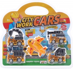 Set de mașini de construcții mici cu avion cu împingere înapoi oferă distracție pentru copii. În blister vei găsi un total de 5 piese cu dimensiuni de 5,5 cm, ideale pentru joacă și dezvoltarea fanteziei copiilor.