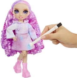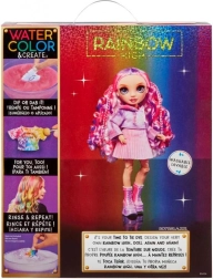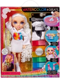 Păpușa Rainbow High cu Acuarele vă permite să îi transformați aspectul conform imaginației voastre. Setul include păpușa într-o ținută albă și șase pulberi lavabile în culori curcubeu: roșu, portocaliu, galben, verde, albastru și violet. Aceste pulberi pot fi aplicate ușor pentru a schimba culoarea hainelor și părului păpușii.