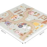 Covorașul are un model unic care reprezintă un oraș pitoresc cu multe drumuri, străzi și intersecții. Datorită acestui lucru, covorașul oferă o formă creativă și captivantă de joacă pentru micii iubitori de mașini, vehicule și diverse mijloace de transport. Fiecare element de pe covoraș este conceput cu grijă, cu accent pe detalii, pentru a stimula imaginația copiilor și a-i încuraja să exploreze și să interacționeze cu mediul. Datorită culorilor vii și luminoase, modelele sunt atrăgătoare vizual, ceea ce stimulează suplimentar dezvoltarea simțurilor copilului.