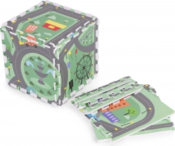 Covorașul puzzle din spumă ECOTOYS, cu motiv de oraș, oferă un spațiu sigur și distractiv pentru joacă și învățare. Din 21 de piese asamblezi ușor o suprafață de 90,5 × 90,5 cm și grosime de 1 cm. Fabricat din spumă EVA certificată, este antiderapant, ușor de curățat și protejează împotriva frigului. Ideal pentru copii de la 3 ani – dezvoltă imaginația, motricitatea fină și orientarea în spațiu.