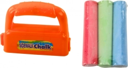 Set vesel de crete groase pentru trotuar, cu suport portocaliu, le permite copiilor să deseneze linii multicolore dintr-o singură mișcare. Cretele sunt ușor de spălat cu apă, iar suportul este ușor de prins – ideal pentru distracție creativă în aer liber de la 3 ani.