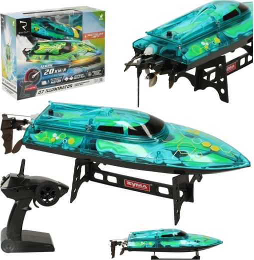 Barca RC REVOLT ILLUMINATOR, într-o atrăgătoare culoare verde, combină un design dinamic cu excelente proprietăți de rulare. Datorită propulsiei puternice și semnalului stabil, se controlează ușor chiar și la distanțe mai mari. Construcția robustă și rezistentă la apă protejează electronica, astfel încât te poți concentra doar pe viteză și manevre.
