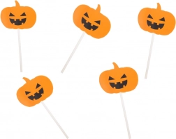 Pachetul conține cinci toppere cu dovleci, care acoperă decorul unei petreceri mici sau completează un candy bar tematic.