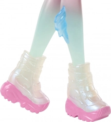 Păpușa Lagoona Blue este pregătită să stăpânească adâncurile și tendințele modei. Are păr lung, parțial prins, cu șuvițe pastel, un top roz cu motiv de schelet de pește și pantaloni colorați în stil Y2K. Datorită articulațiilor este ușor de poziționat și potrivită pentru scenete inventive și fotografii.