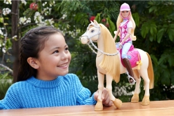 Pentru toți micii fani ai cailor și ai lui Barbie, această păpușă Malibu este alegerea perfectă. Îmbrăcată într-o ținută ecvestră stilată, inclusiv o vestă roz în carouri, pantaloni albaștri și cizme de călărie maro. Barbie este pregătită pentru aventuri la galop.