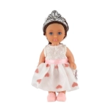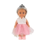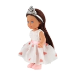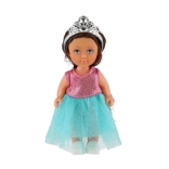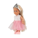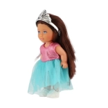Păpușa este echipată cu o coroană și păr lung care adaugă farmec.