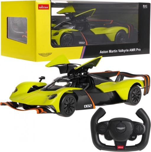 Trăiește adrenalina circuitului acasă cu modelul licențiat Aston Martin Valkyrie AMR Pro la scara 1:14 de la Rastar. Acest supercar cu telecomandă oferă deplasare în toate direcțiile, uși funcționale, lumini LED, suspensie independentă și 2 viteze de rulare. Construcție precisă din plastic ABS, roți din cauciuc și control pe 2,4 GHz pentru manevrare fluidă și precisă.