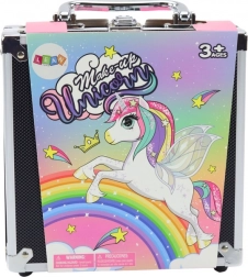 Elegantul set cosmetic într-o geantă neagră va încânta orice mică iubitoare de machiaj și manichiură. Conține farduri de pleoape colorate (mate, satinate și cu brocart), lacuri de unghii, sclipici și accesorii practice. Geanta este ușoară și ușor de transportat, ideală pentru călătorii și joaca cu prietenele. Un cadou grozav pentru copiii 3+, care sprijină creativitatea și motricitatea fină.
