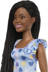 Această păpușă BARBIE la modă le oferă copiilor inspirație pentru a-și crea propriile povești. Poartă o rochie albastră decorată cu inimioare colorate, completată de ochelari și pantofi roz. Codițele lungi împletite și expresia veselă o fac prietena ideală pentru joaca de zi cu zi și pentru dezvoltarea imaginației.