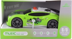 Mașină sport din plastic pe baterii, cu efecte luminoase și sonore, este jucăria ideală pentru micii piloți de curse.