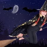 Aprindeți atmosfera de Halloween și de carnaval cu acest costum de vrăjitor stilat pentru copii. Setul include o pelerină neagră presărată cu stele aurii și o pălărie clasică ascuțită. Datorită materialului ușor și mărimii universale, se îmbracă ușor, este confortabil și nu limitează mișcarea – ideal pentru toate jocurile magice și distracția de la petrecerile mascate.