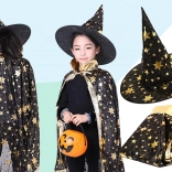 - Costum de vrăjitor pentru copii (pelerină + pălărie ascuțită)