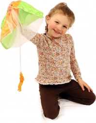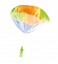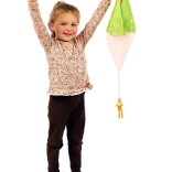 Aruncă, urmărește și prinde! Parașutistul luminos cu parașută oferă copiilor distracție de acțiune fără sfârșit și, în același timp, îi învață principiile căderii și planării. Doar aruncă în aer – parașuta se deschide și încetinește căderea la fel ca la un parașutist adevărat. Datorită figurinei compacte de 12 cm, jucăria este potrivită pentru grădină, parc și interior.