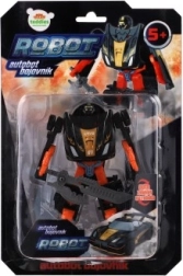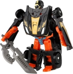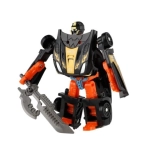 Acest robot transformabil în elegantul negru oferă dublu divertisment – printr-o singură mișcare îl schimbi din mașină sport în robot impunător. Datorită membrelor articulate, adoptă cu ușurință diverse poziții de luptă și de acțiune, stimulând imaginația copiilor.