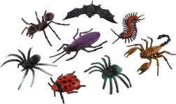 Setul include păianjeni, miriapod, buburuză, scorpion, furnică, greier, gândac de bucătărie și liliac. Săculețul facilitează depozitarea și transportul.