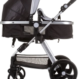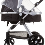 Copertină mare reglabilă cu vizieră de soare, centuri în 5 puncte cu pernițe, coș spațios, bară frontală detașabilă, apărătoare pentru picioare, geantă, suport pentru băuturi și plasă contra insectelor – toate incluse.