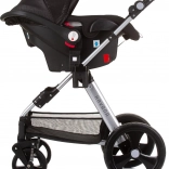 Cadrul ușor din aliaj se manevrează simplu, roțile cu suspensie și eliberare rapidă fac față orașului și terenului mai dificil, iar roțile din spate au o frână articulată fiabilă. Copertina mare reglabilă cu vizieră de soare detașabilă, centuri în 5 puncte cu pernuțe moi și noul mecanism de stabilizare a scaunului și landoului (colecția 2024) sporesc siguranța și confortul.