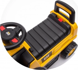 Trotinetă fără pedale pentru copii, în stil buldozer de șantier, licențiată CAT, oferă joc realist și susține dezvoltarea abilităților motorii. Are cupă și braț mobile, volan rotativ cu claxon, scăunel confortabil cu spațiu de depozitare și o construcție stabilă pentru plimbări sigure în interior și în aer liber.
