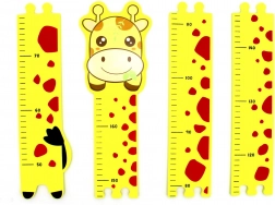 Metru din spumă pe perete cu motiv girafă, ideal pentru camerele copiilor. Este format din 4 piese ca un puzzle și măsoară până la 165 cm.