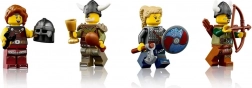 - Patru minifigurine – fierar, jarl, purtător de scut și arcaș, plus arme și accesorii, inclusiv mai multe scuturi, o perie, ciocane, săbii, lănci și un potir, arc și săgeată