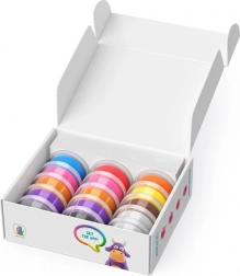 Setul include 15 borcănașe de plastilină moale și un ghid digital pas cu pas în aplicația pentru Android și iOS. Materialul este sigur pentru pielea copiilor și potrivit pentru joacă repetată – materialul nefolosit se păstrează într-un borcănaș închis etanș.
