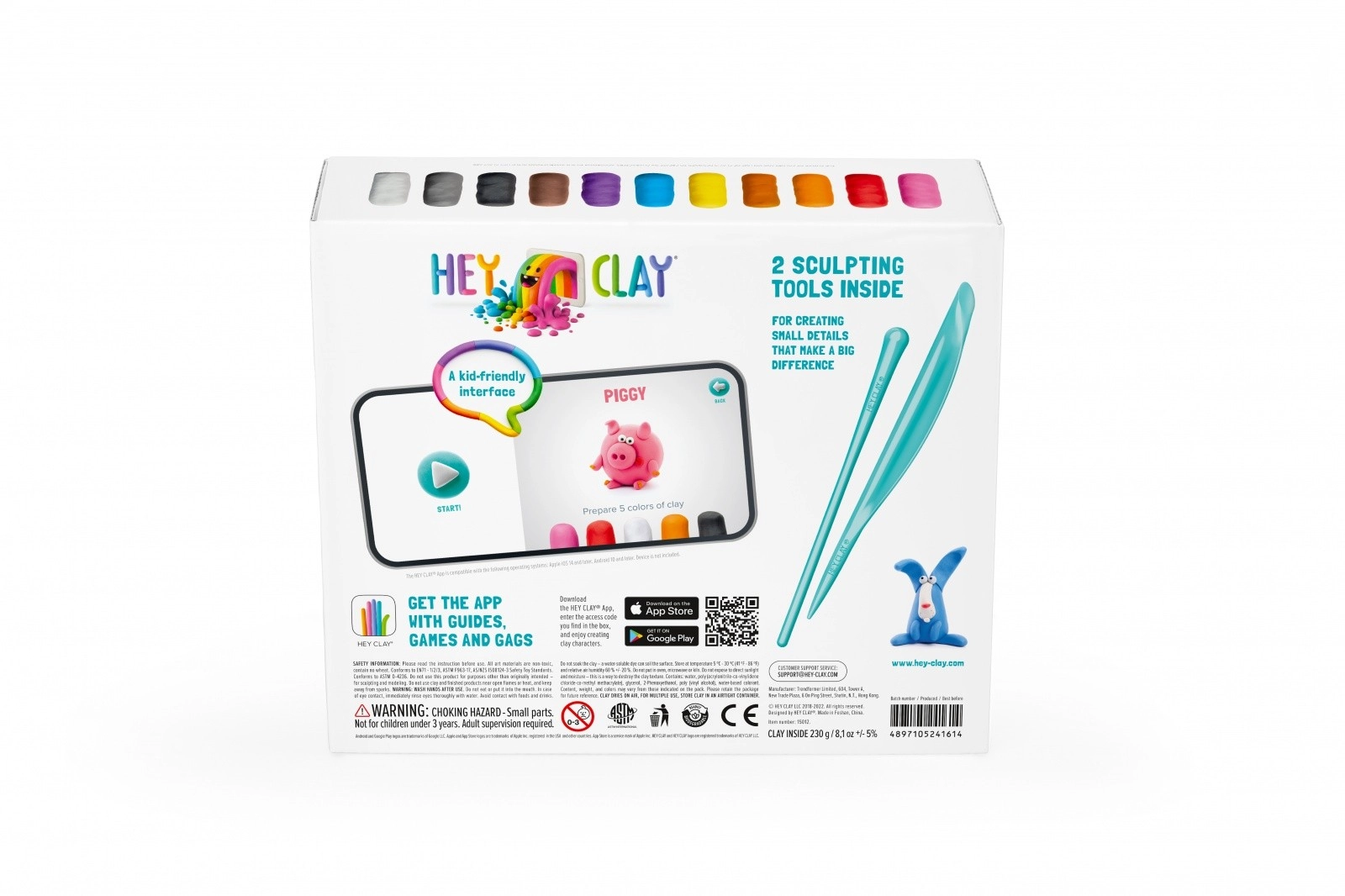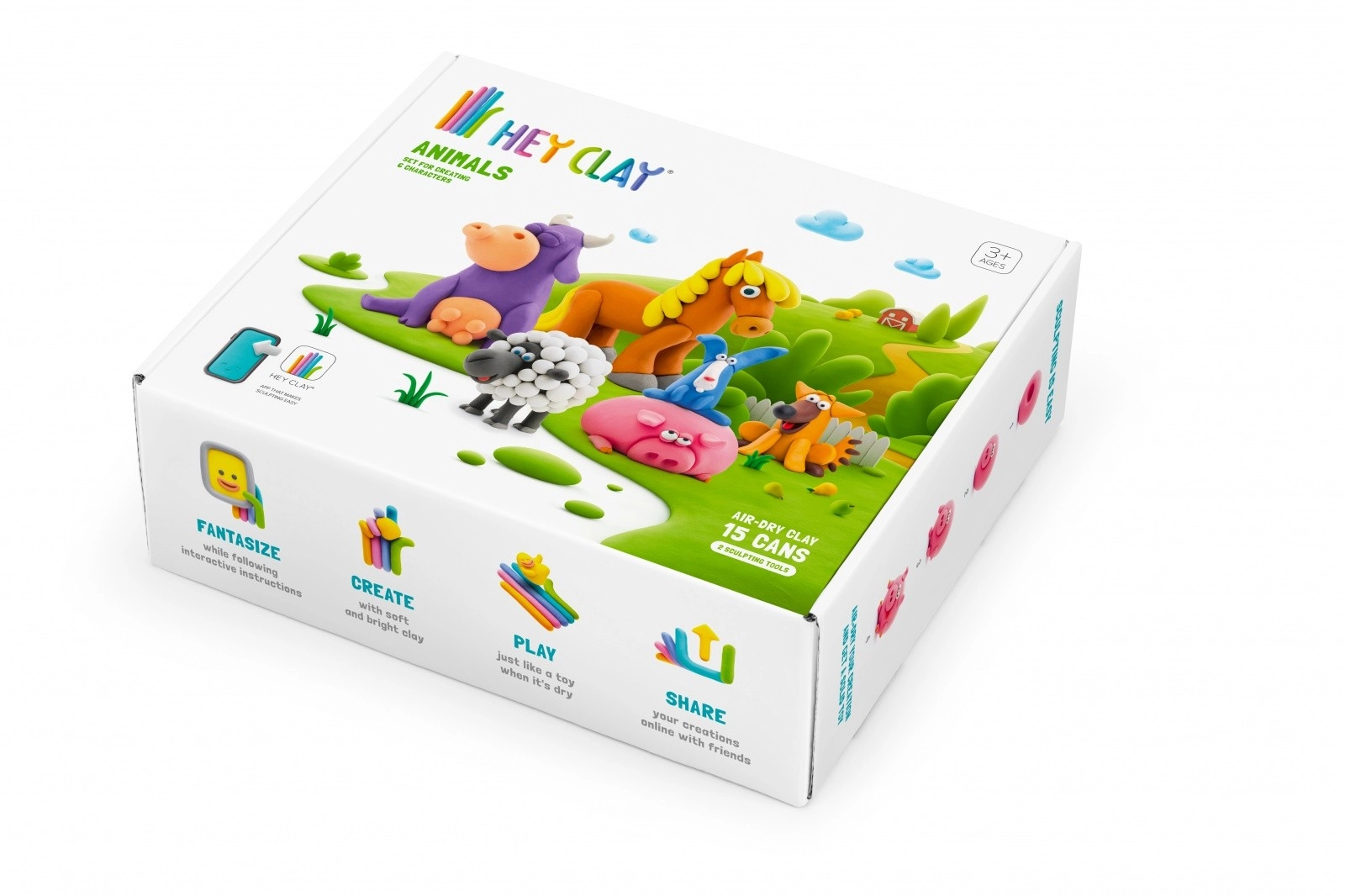 HEY CLAY Animăluțe este un set creativ pentru micii sculptori. Plastilina spumoasă, ușoară, nu lipește, nu murdărește și se întărește la aer după finalizarea creației, astfel încât copiii își pot păstra figurinele. Datorită paletei bogate de culori și instrucțiunilor pas cu pas din aplicația gratuită, pot realiza cu ușurință până la 6 animăluțe adorabile.