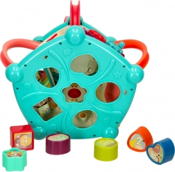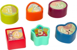 Șase cuburi colorate și orificii corespunzătoare îi învață pe copii să recunoască formele, culorile și numerele. Susține gândirea logică și orientarea spațială.