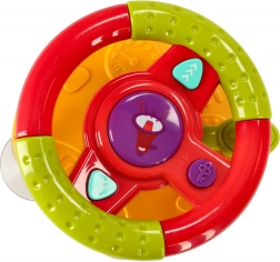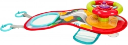 Lăsați copilul să descopere bucuria condusului! Volanul interactiv cu covoraș vesel și oglindă sigură oferă claxon, semnalizări și butoane cu sunete care imită fidel condusul unei mașini. Datorită sistemelor inteligente de prindere, se atașează ușor pe cărucior, scaun auto sau poate fi așezat pe masă.