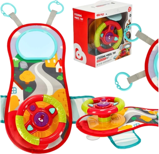 Jucărie interactivă distractivă și sigură pentru micii șoferi: volan pentru copii cu sunete, covoraș colorat cu oglindă și prinderi practice pentru cărucior sau scaun auto. Susține dezvoltarea motricității fine, coordonarea mână–ochi și imaginația, în timp ce sunetele realiste și elementele luminoase transformă fiecare drum într-o aventură.
